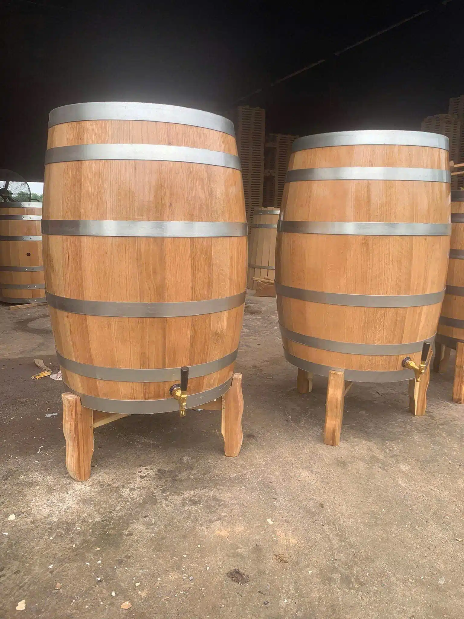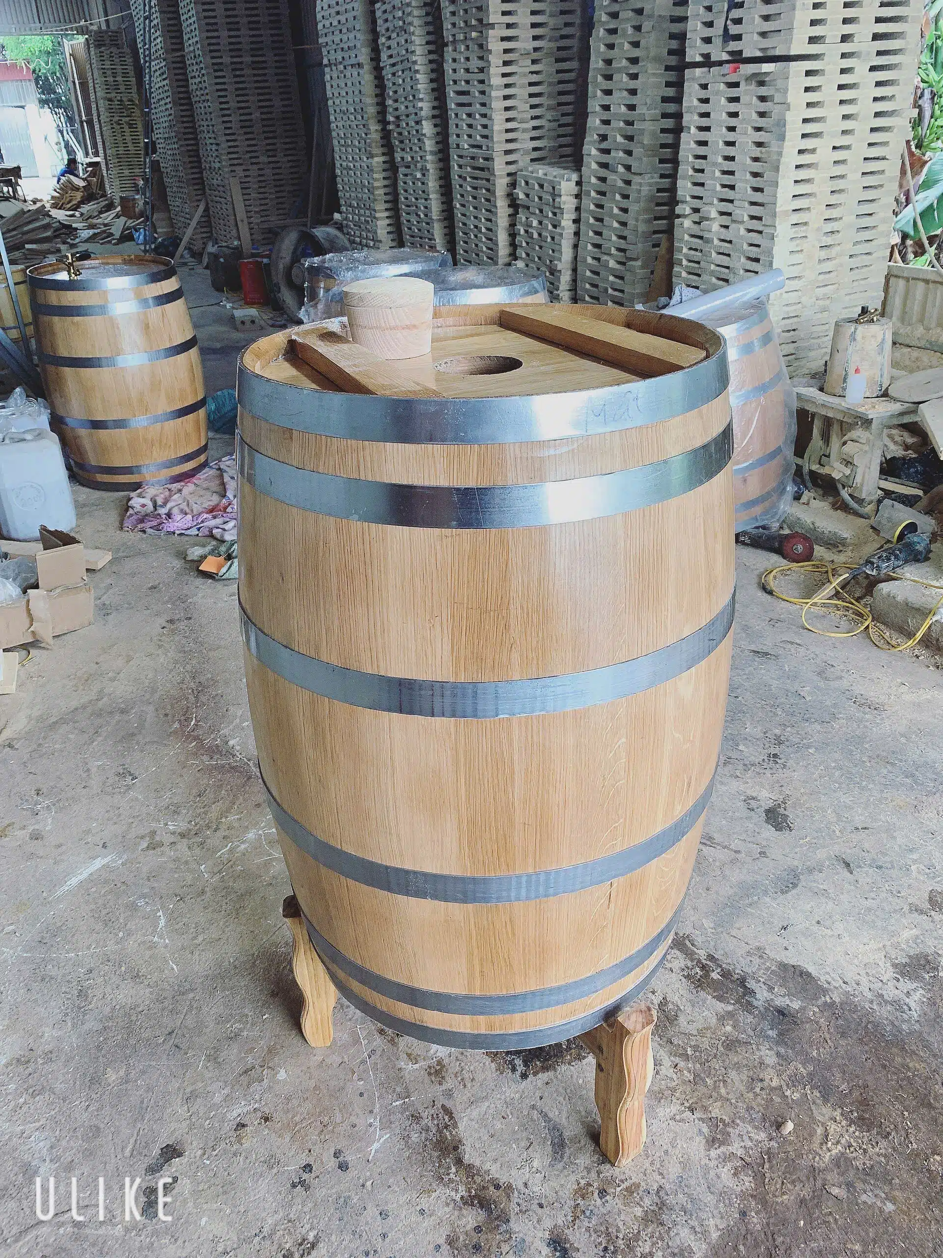 • Dễ Dàng Thao Tác: Kết hợp với chân đế gỗ vững chãi (như trong hình ảnh), giúp thùng ổn định và thuận tiện cho việc lấy rượu thông qua vòi đồng.