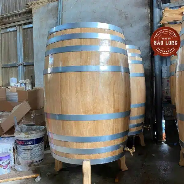 Xưởng SX Thùng Gỗ Bảo Long trân trọng giới thiệu Thùng Rượu Gỗ Sồi 300 Lít – một tuyệt tác của sự vững chãi, tinh hoa và đẳng cấp, được thiết kế đặc biệt để phục vụ nhu cầu ủ và lão hóa rượu ở quy mô lớn. Đây là sự lựa chọn hoàn hảo cho các nhà máy rượu chuyên nghiệp, hầm rượu tư nhân đồ sộ, nhà hàng cao cấp, quán bar sang trọng hay những người đam mê sưu tầm, sản xuất rượu với số lượng lớn, đặt tiêu chuẩn chất lượng lên hàng đầu. Với dung tích 300 lít ấn tượng, sản phẩm này không chỉ tối ưu hóa quá trình phát triển hương vị rượu lên đến đỉnh cao mà còn là một tác phẩm nghệ thuật nội thất hoành tráng, tạo điểm nhấn uy nghi và sang trọng cho mọi không gian, khẳng định vị thế của chủ sở hữu.