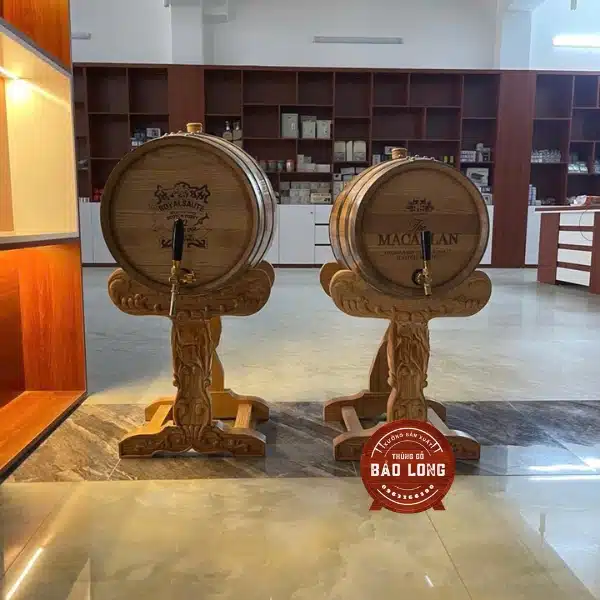 | Thùng rượu gỗ sồi 50L | 5.500.000 ₫ | Mẫu thùng cao cấp, có chân đục chạm khắc tinh tế, phù hợp trang trí hoặc ngâm rượu lâu năm |